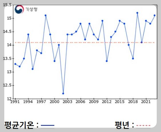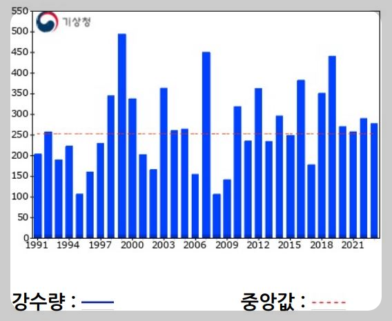 5. 참고자료 : 가을철 평균기온 및 강수량 특성 (1991년 ~ 2023년)