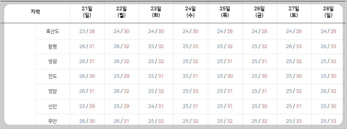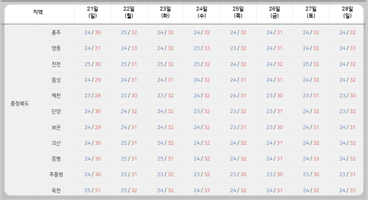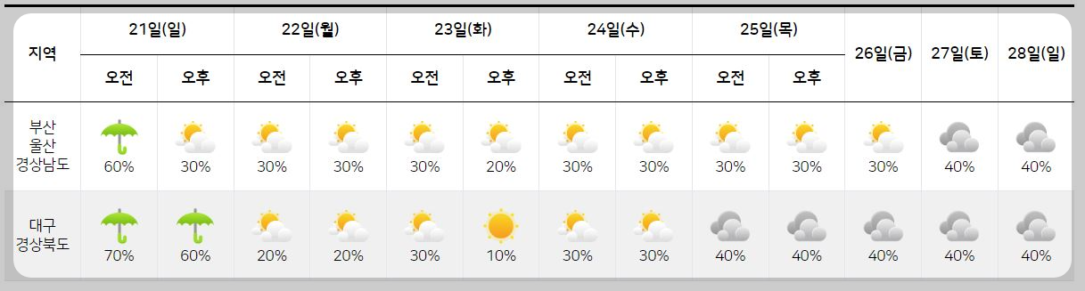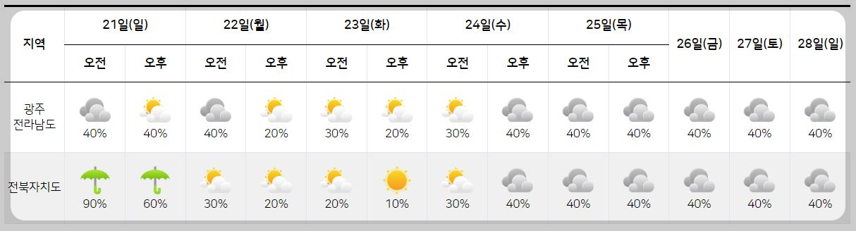 지역별 자세한 날씨와 당일의 날씨 예보는 기상청 날씨누리를 통해 확인하시기 바랍니다.