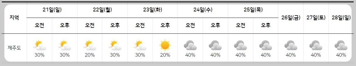 2024년 7월 21일 7월 22일 7월 23일 7월 24일 7월 25일 7월 26일 7월 27일 7월 28일 전국 제주도 주말 주간 날씨에 대해서 7월 18일 자 기상청 정보를 통해 자세히 알아보겠습니다.