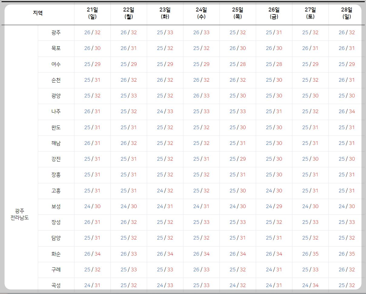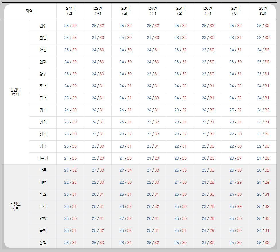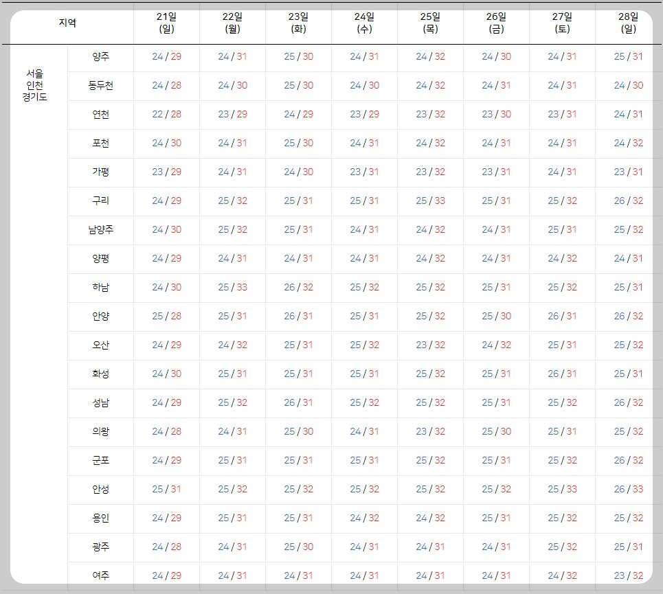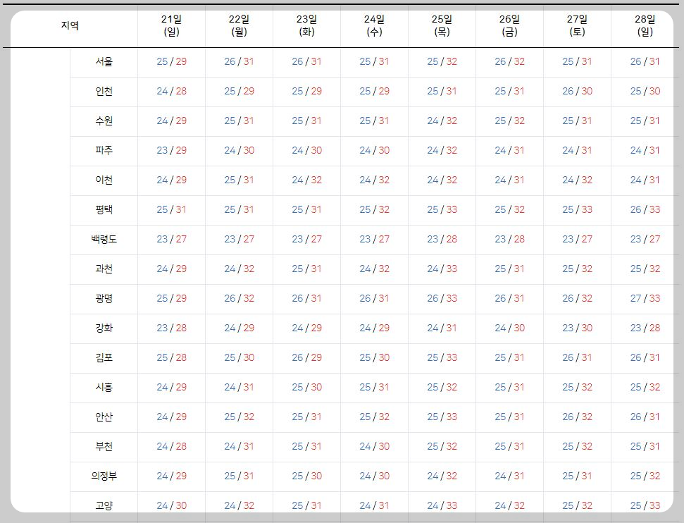 7월 20일 일요일 ~ 7월 28일 일요일 주말 날씨 중에