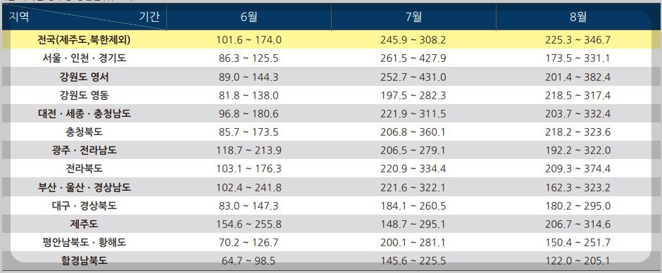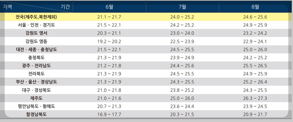 1. 2024년 8월 전국 여름 기온 예보 전망